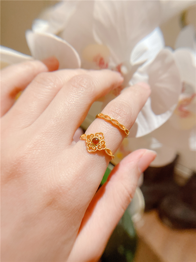 Chinese Traditional Retro Mountain and Sea S925 Silver Gold Plated Enamel Couples Rings