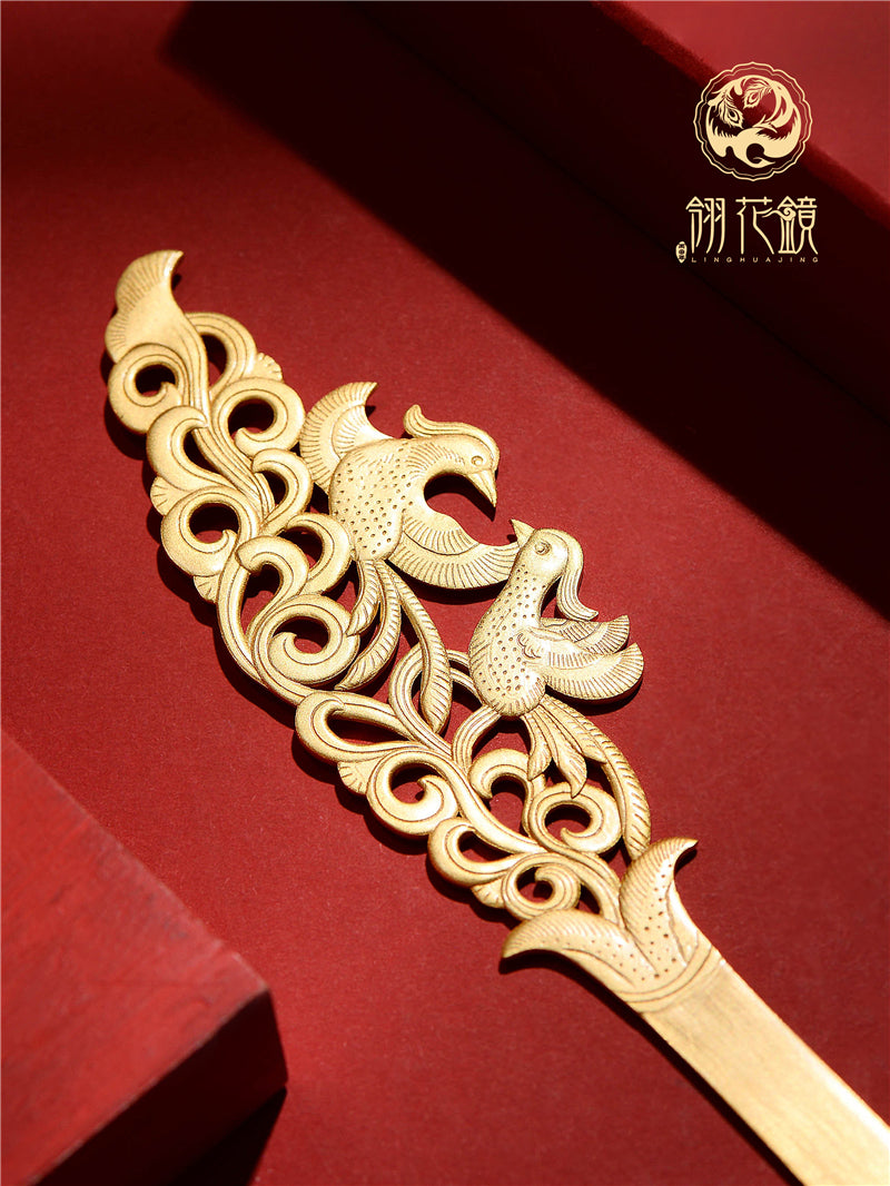 Handcraft Tang Dynasty Mandarin Duck s925 Silver Gold Plated Hairpin
