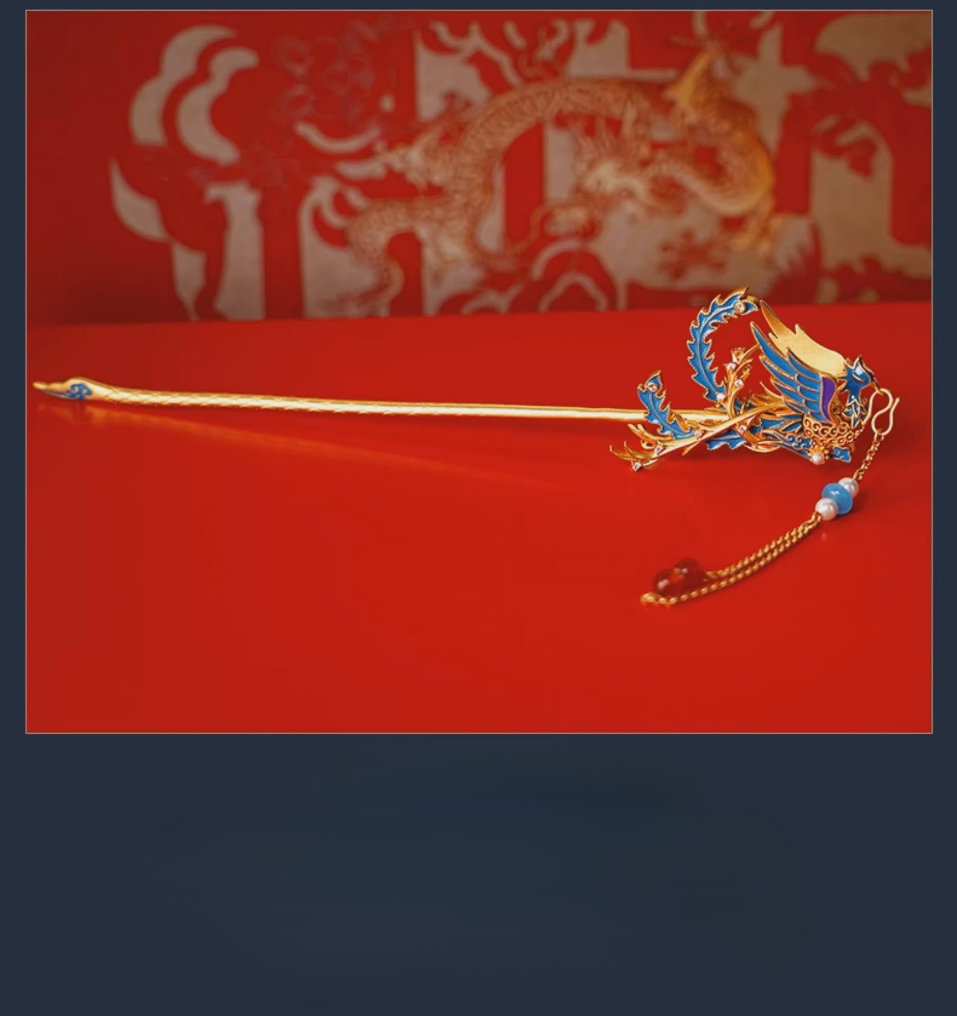The phoenix dances lightly, its wings outstretched, graceful and elegant, displaying its exquisite beauty and capturing the pinnacle of elegance in the hairpin.