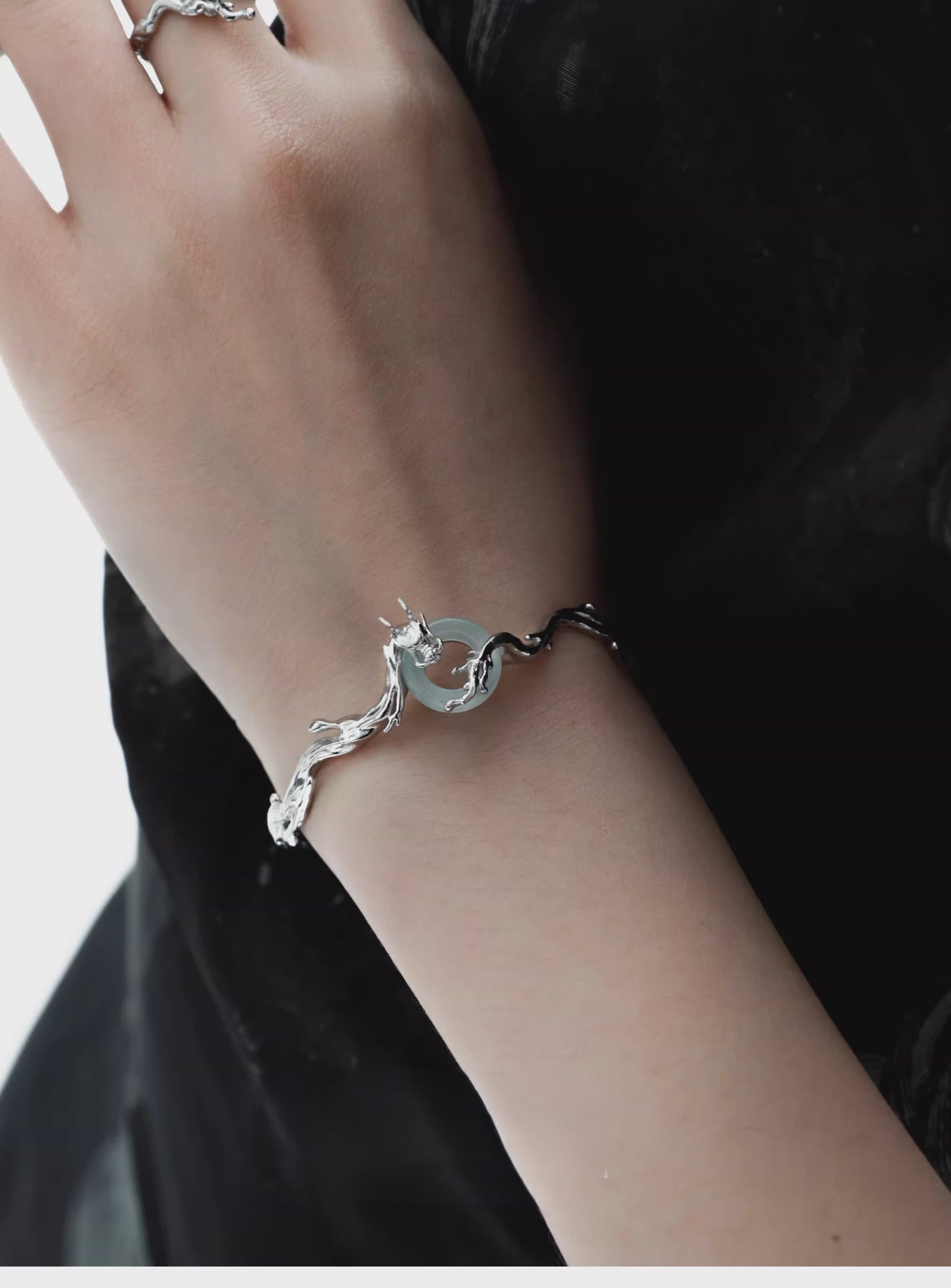 New Chinese Style Silver Wandering Dragon Holding Jade Bracelet