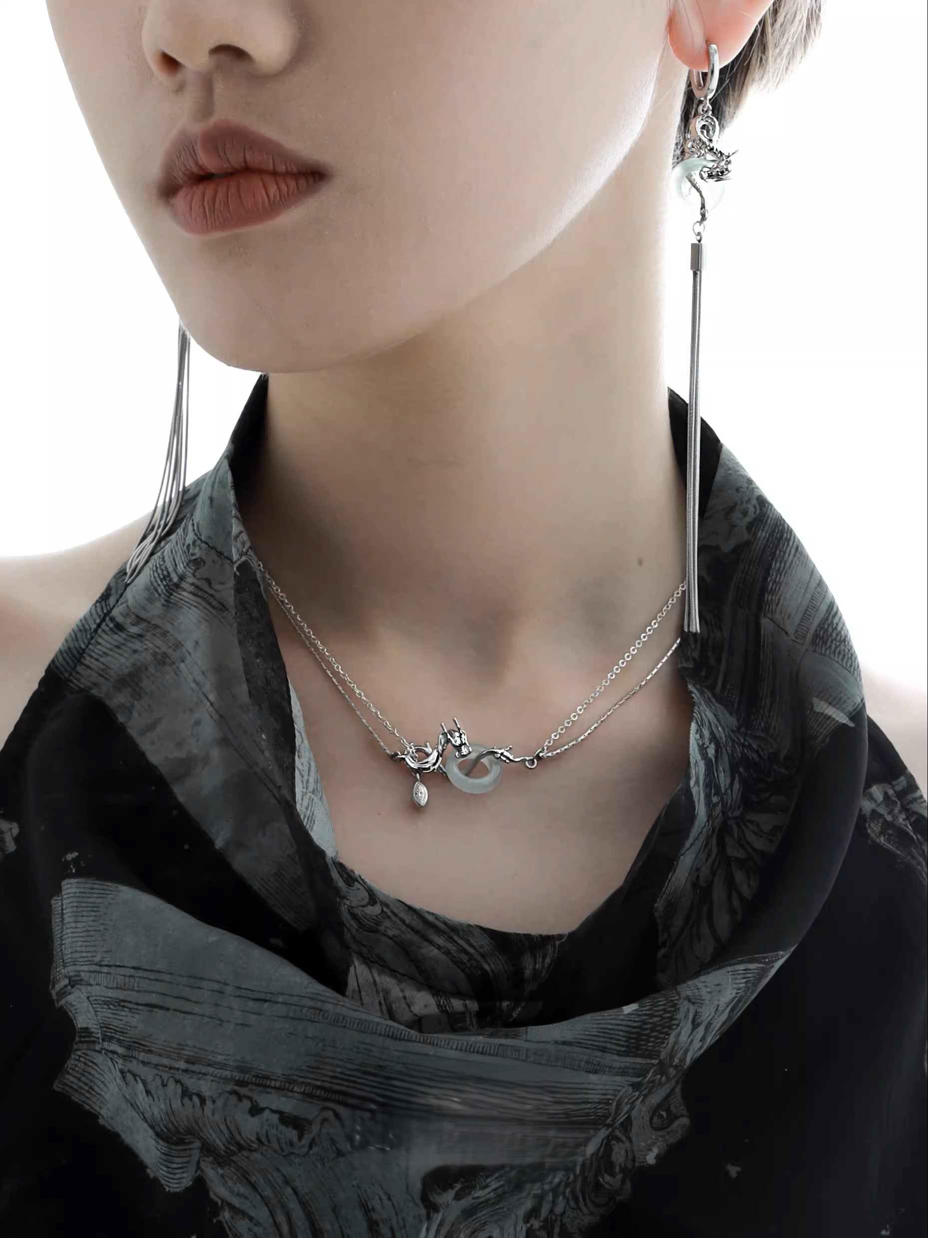 New Chinese Style Silver Wandering Dragon Holding Jade Necklace